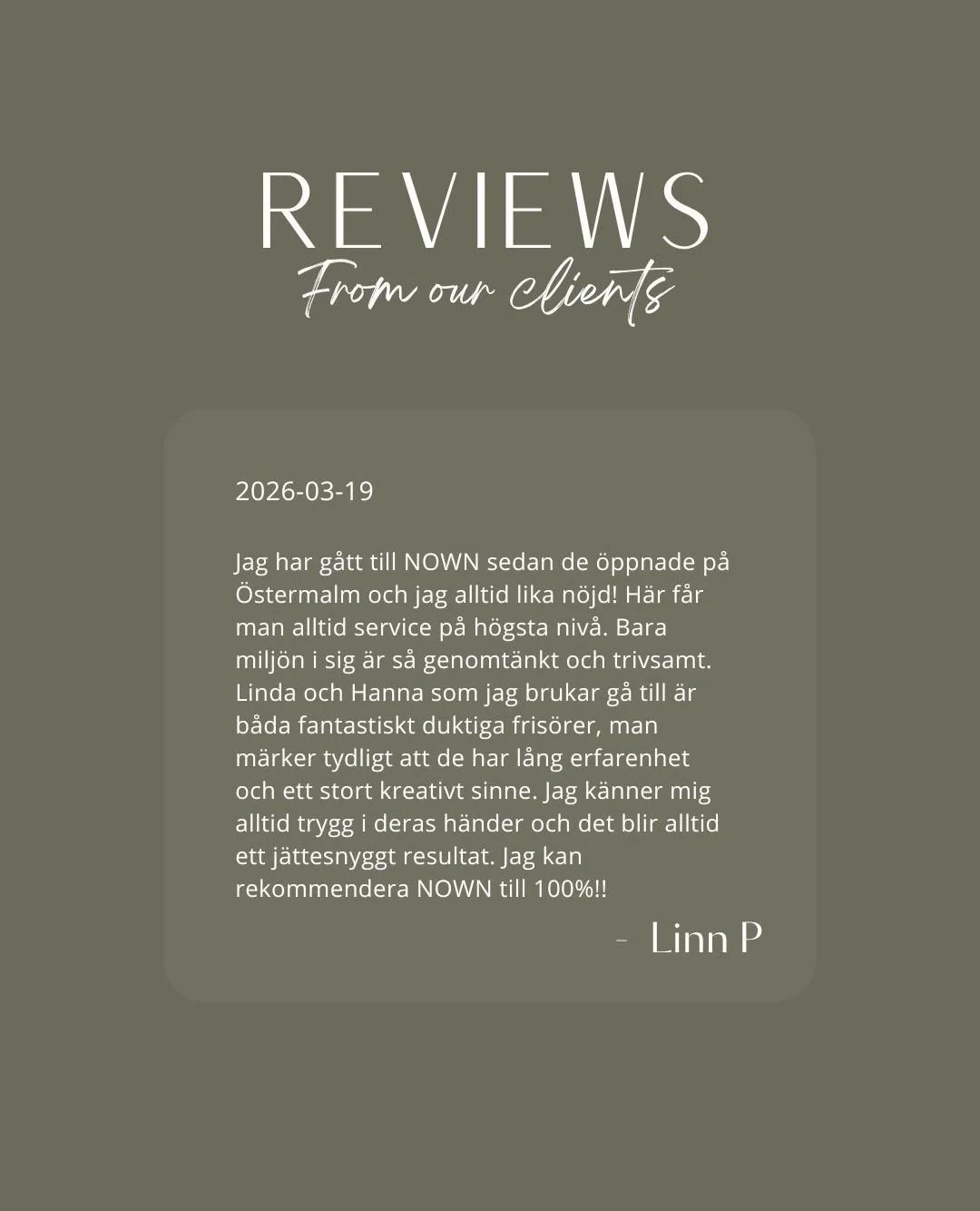 Vi vill att det ska vara enkelt att ta hand om ditt hår. Därför erbjuder vi smidiga bokningsmöjligheter och flexibla tider för att passa din livsstil. Besök vår salong och upplev skillnaden med NOWN, där passion, expertis och förstklassig service går hand i hand.